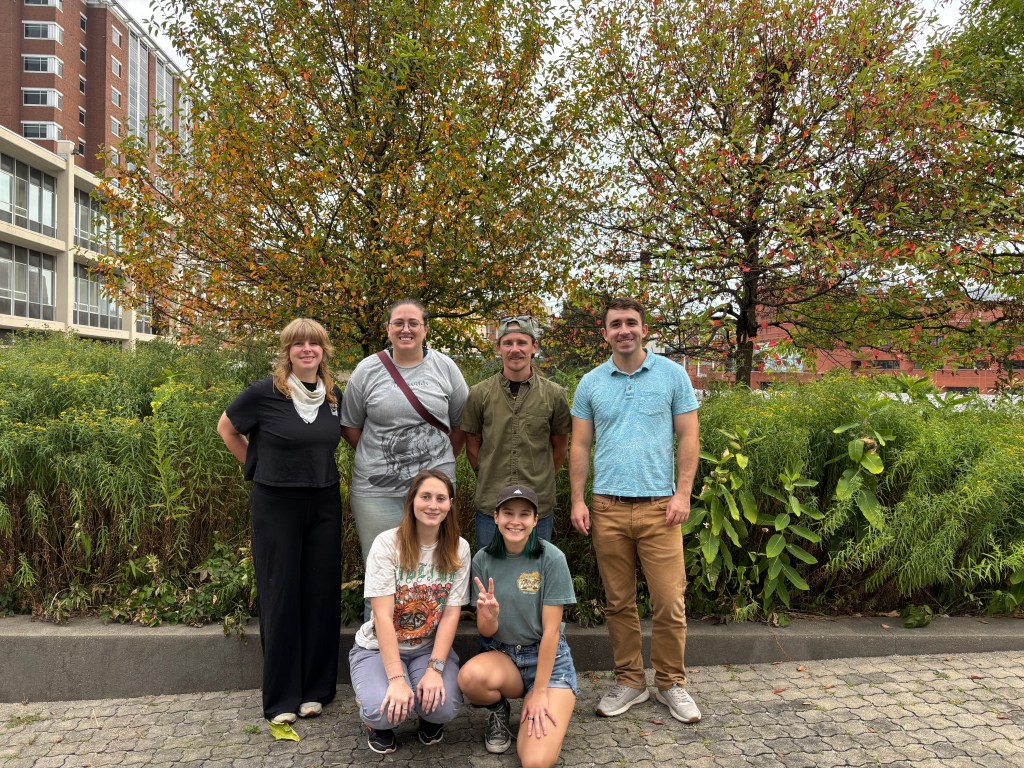 Back row from left to right: Kylie Ryan – undergraduate assistant, Sadie Collins – technician, Ben Knowlton – graduate student, Caleb Wilson – assistant professor. Front row, left to right: Zoë York – Lab technician senior and graduate student, Lee Salmon – technician.